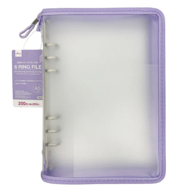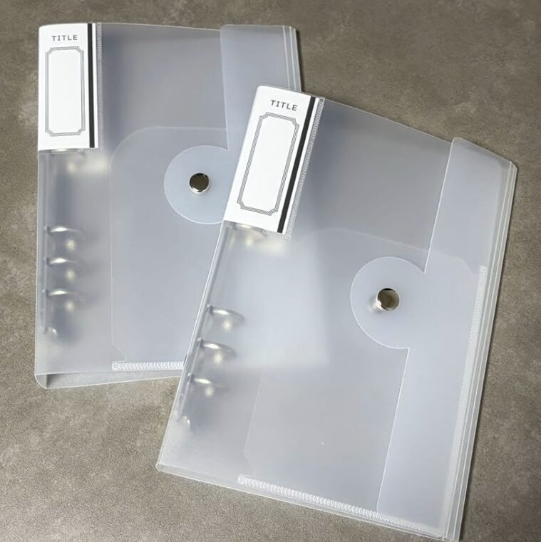 6リングバインダーは、専用のクリアポケットやジッパーリフィルと組み合わせて、家計の仕分けや持ち運び用のアクスタケースなどに使われている様子がよく見られます。