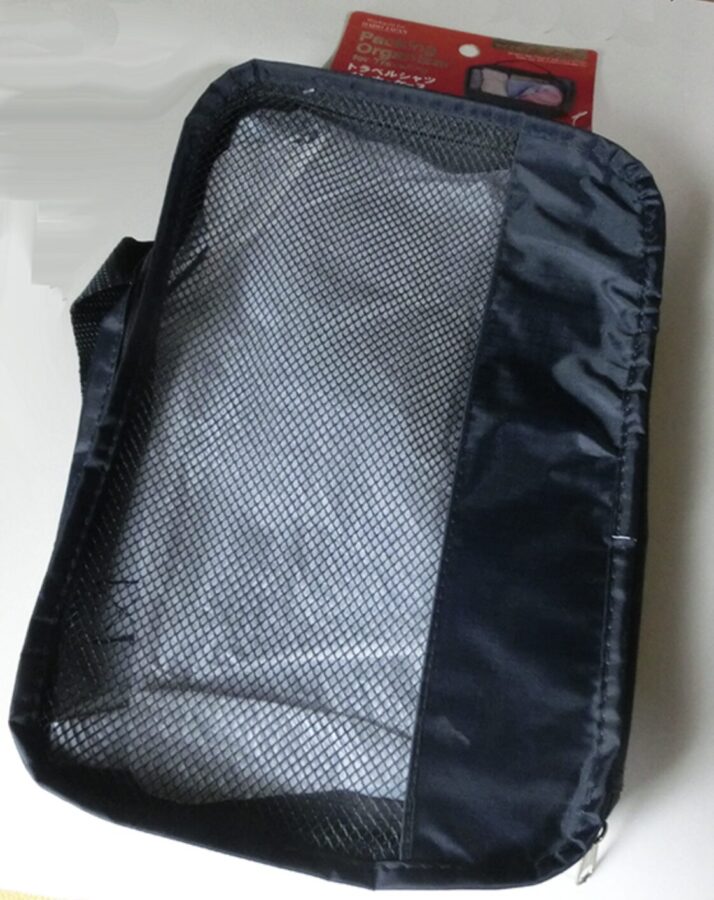 100均の袋に使用済みシャツを入れると荷物がごちゃつきがちですが、これなら最後まで整理しやすいです。