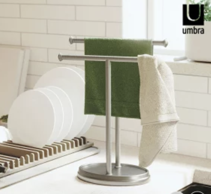 世界的なデザインブランド「アンブラ(umbra)」のホルダーは、100均のふきんかけにはない独創的なフォルムが特徴です。
