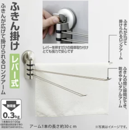 | ステンレス3本アーム | 錆びにくく複数枚干せる | 吸盤 |