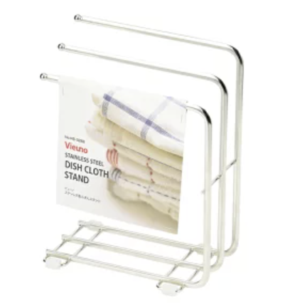 壁に貼るスペースがない場合に重宝するのが、自立式のスタンドタイプのふきんかけです。