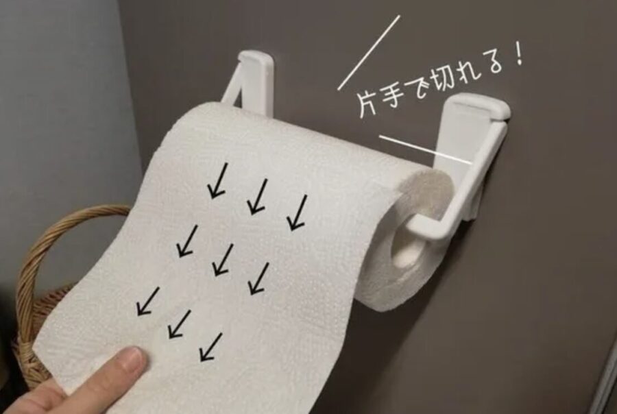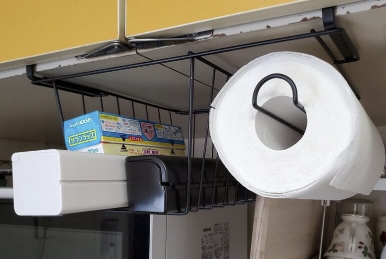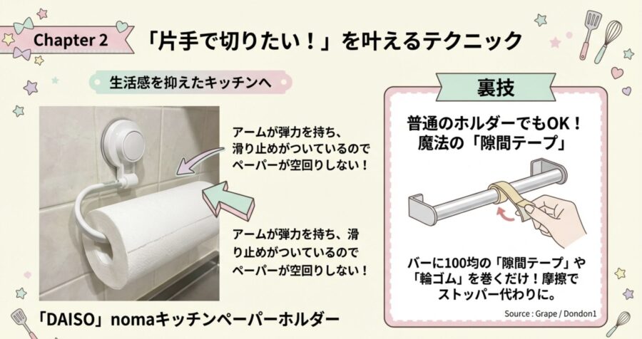 キッチンペーパーホルダー「すぐ落ちる」「勝手に回る」を解決!100均グッズでできる【裏技補強術】