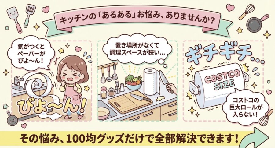 たかが数百円のアイテムですが、キッチンペーパーホルダーの使い勝手は、毎日の料理のストレスに直結します。「どうせ100均だから」と諦めていませんか?