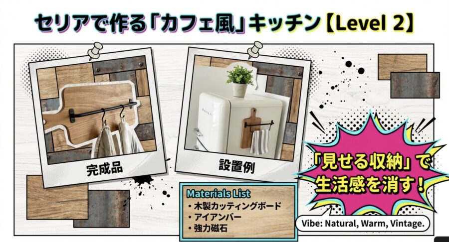カッティングボード×丸棒で「カフェ風ホルダー」