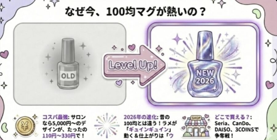 100均のマグネットネイルは、2025年から2026年にかけて驚異的な進化を遂げました。