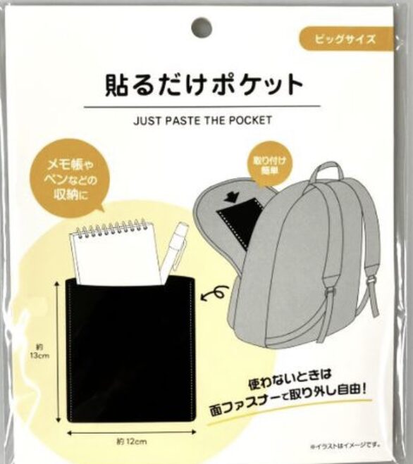 大きなシール型で、さっとポケットを増やしたい場合は、キャンドゥの「貼るだけポケット 大」を選ぶとよいです。