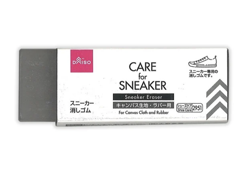 手を汚さずスピーディーに仕上がるので、お出かけ前の応急処置にもぴったりですね。また、スエードやスニーカーの汚れ落としに使える専用の消しゴムが置いてあることもあります。