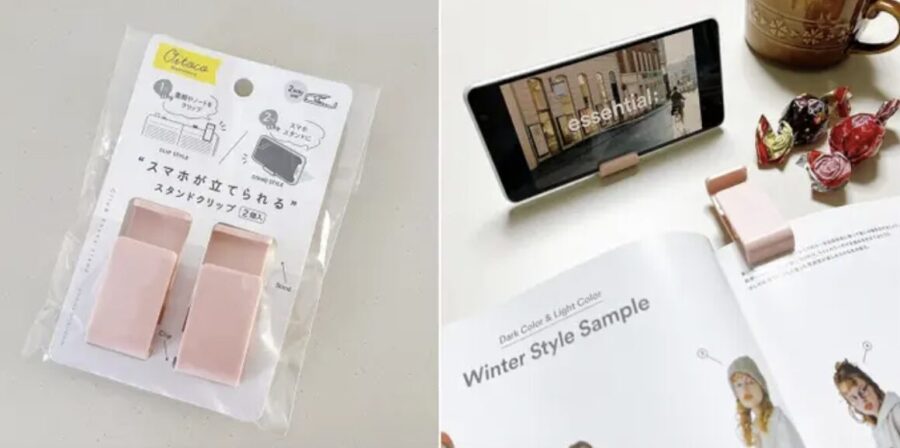 ダイソーの「2wayスタンドクリップ」やセリアの「スマホが立てられるスタンドクリップワイド」など、100均の代用品の中には、本を挟むだけでなくスマホを横向きに立てかけられる機能がついている商品が販売されています。