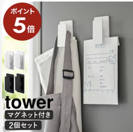 キッチン周りでレシピ本を開いたままにしたいなら、山崎実業のタワーマグネットクリップが便利です。